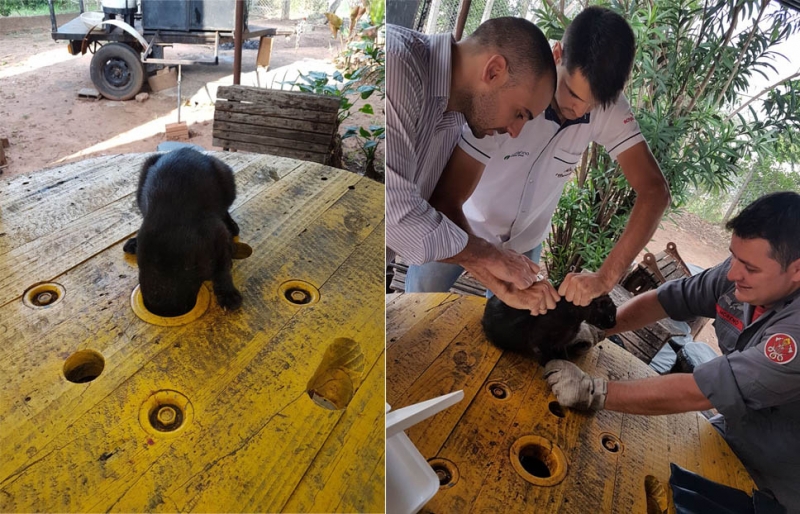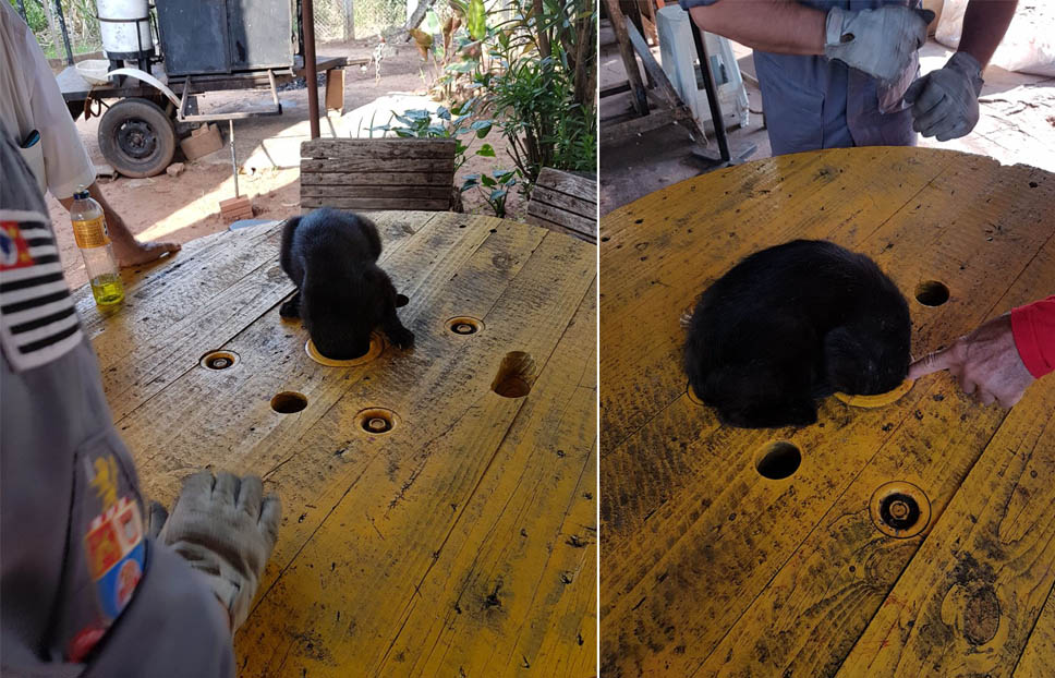 Equipes do Corpo de Bombeiros de Tupã (70 quilômetros de Marília) resgataram na manhã desta quarta-feira (25) um gato que ficou com sua cabeça entalada em um carretel de fiação.