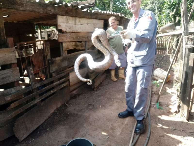 Equipes do Corpo de Bombeiros de Paraguaçu Paulista (70 quilômetros de Marília) resgataram na tarde da terça-feira (23) uma jiboia que estava em uma propriedade no município.