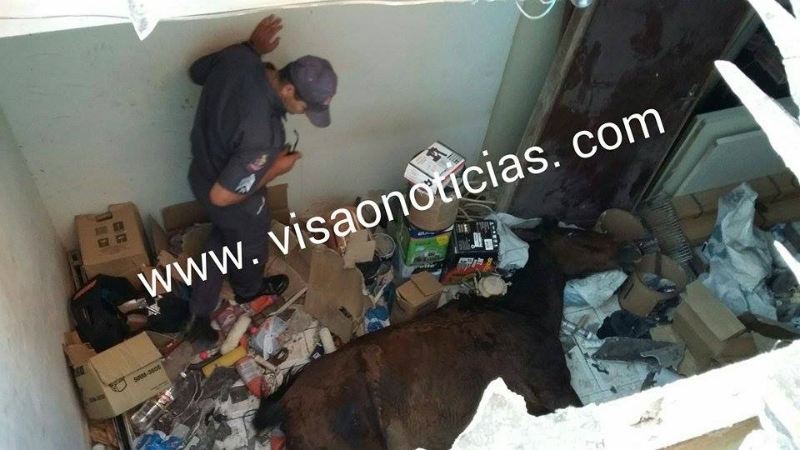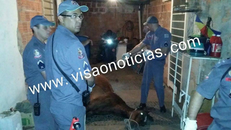Apesar de todos os esforços, o animal que pesava cerca de 300 quilos, precisou ser sacrificado, por ter fraturado a coluna e sofrer ferimentos graves na cabeça.