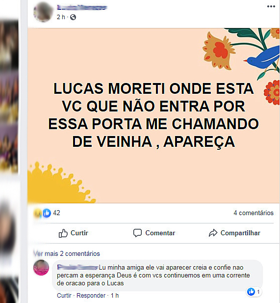 Mensagens nas redes sociais de amigos e familiares do rapaz.