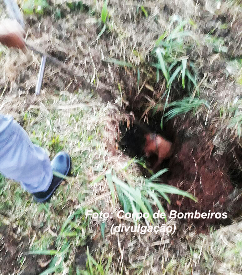 mobilizados para resgatar uma cachorrinha e um cavalo que tinham caído em buracos. No caso do cavalo, como estava na vala há quase três dias, não resistiu. A cachorrinha foi devolvida à proprietária.