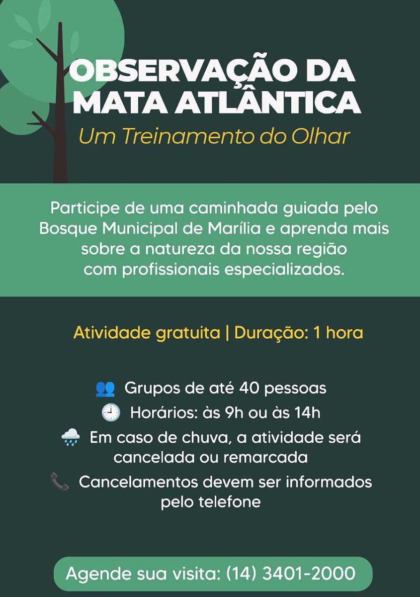 A Secretaria Municipal do Meio Ambiente e Serviços Público anunciou que o Bosque Municipal der Marília retomou o agendamento para visitas monitoradas e atividades de educação ambiental. A iniciativa é voltada para escolas, instituições ou qualquer grupo interessado em vivenciar uma aula passeio e aprender mais sobre preservação ambiental de forma prática e interativa.