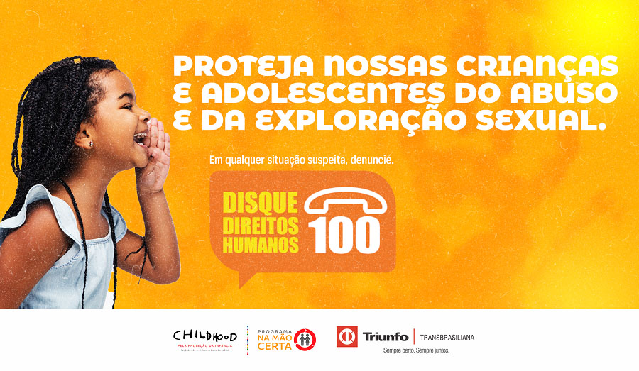 A Triunfo Transbrasiliana, Concessionária que administra a BR-153 anunciou o lançamento de uma campanha educativa que reforça com os seus usuários e a sociedade em geral sobre a importância de denunciar situações de abusou ou exploração sexual contra crianças e adolescentes, por meio da canal de denúncias Disque 100.