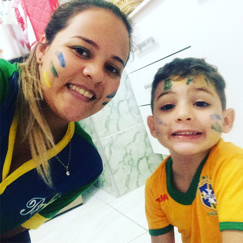 Geovanna e o garotinho Davi (4 anos), moradores do bairro Santa Antonieta, em foto ao Visão Notícias, comemoram a vitória brasileira.
