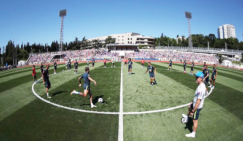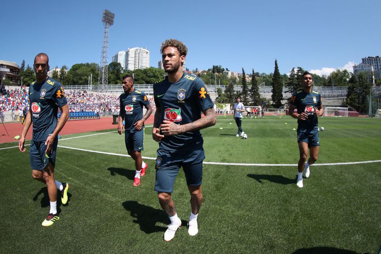 Cerca de 4 mil torcedores estiveram presentes na arquibancada do campo do Centro de Treinamento da Seleção Brasileira, ao lado do Swissotel Resort Camélia, onde está hospedada a delegação do Brasil, em Sochi, para o primeiro treino da equipe canarinha na Rússia.