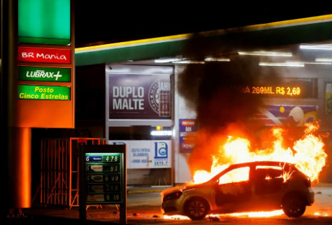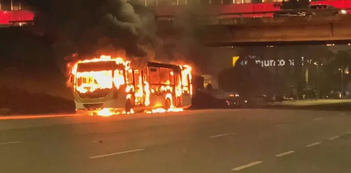 O Corpo de Bombeiros do Distrito Federal afirma que três carros e cinco ônibus foram totalmente queimados durante os atos de vandalismo no centro de Brasília, na noite desta segunda-feira (12).