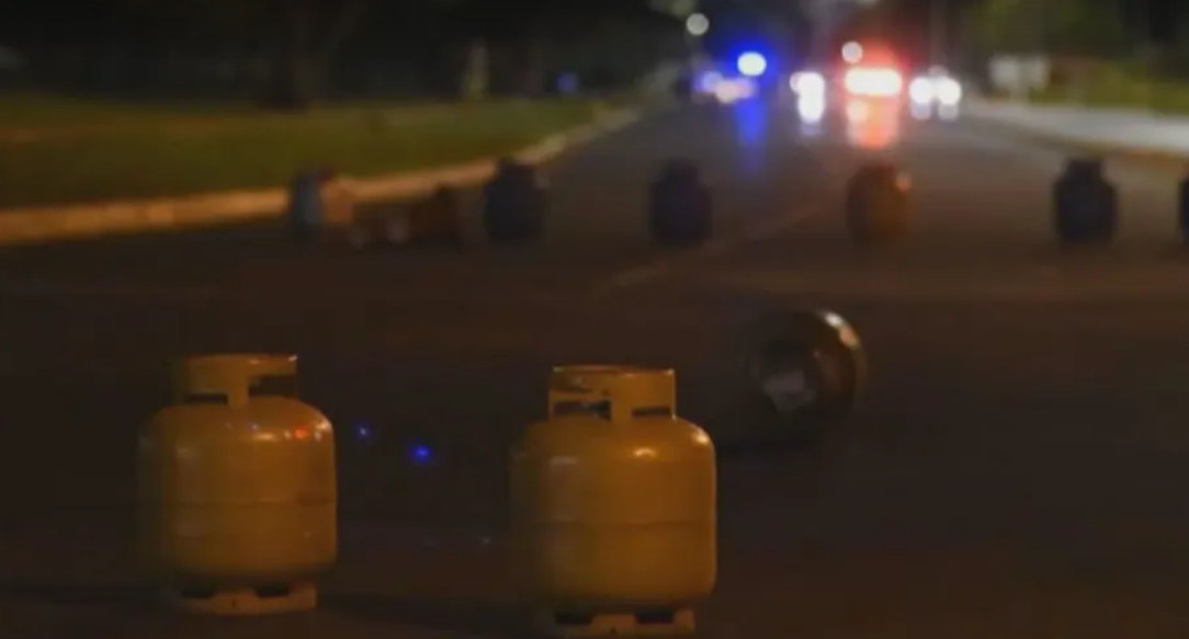 Policiais militares entraram em confronto com o grupo, que colocou botijões de gás em vias próximas ao local.