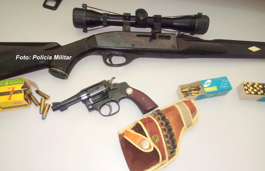 Revoltado por ter sido ameaçado pelo próprio pai, vítima chamou a polícia e confirmou a existência de armas em casa, inclusive uma carabina com luneta e muita munição.