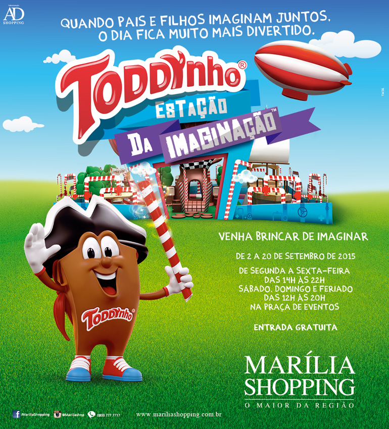 “Essa ação vai de encontro ao objetivo do Marília Shopping em oferecer a seus visitantes atrações diferenciadas. O espaço temático Toddynho® Estação da Imaginação™, irá proporcionar um universo de aprendizado para os pais e seus filhos se divertirem juntos”, destaca Lindolfo Moura Filho, gerente geral do Marília Shopping.