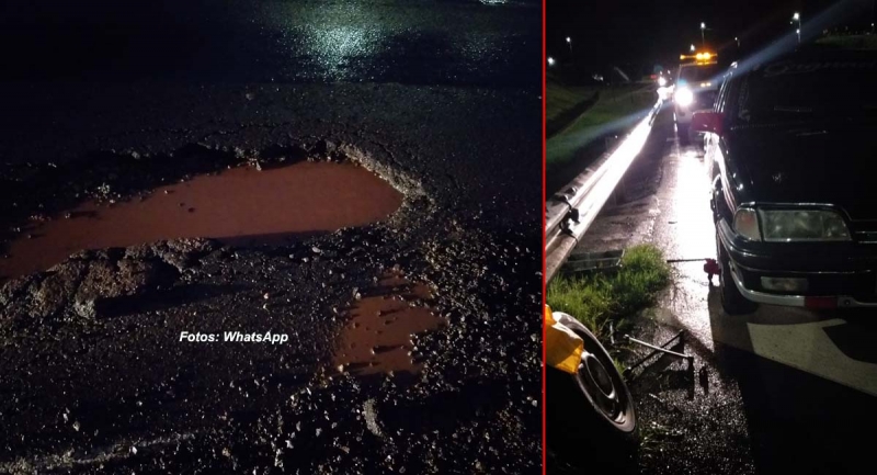 Na noite deste domingo, um enorme buraco se abriu bem embaixo do viaduto que dá acesso ao distrito de Rosália, o que dificulta a visualização por parte dos motoristas.