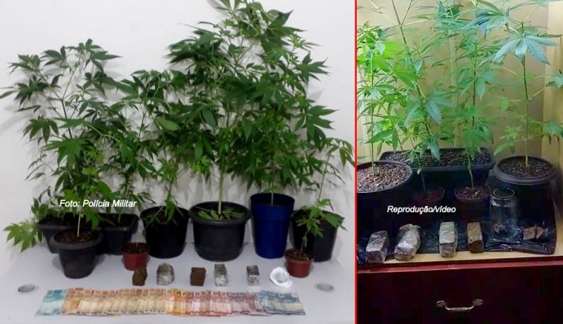 Os 11 pés do entorpecente estavam escondidos e plantados em vasos para que ninguém descobrisse, mas ele mesmo acabou se "entregando". Os PMs ainda localizaram uma mochila contendo outros cinco tijolos pequenos e R$ 932.