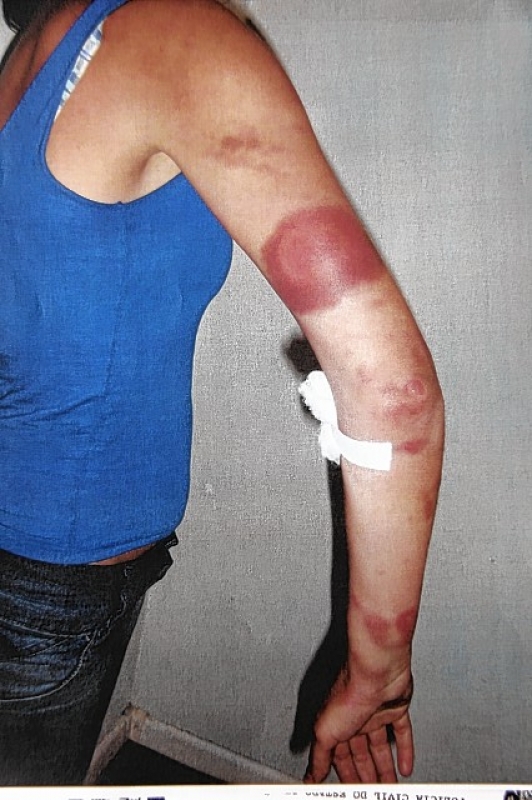 Quando os policiais chegaram ao endereço, a mulher, bastante machucada, já havia se refugiado na casa de uma vizinha. Ela contou à polícia que, após discutir com o companheiro durante a madrugada, ele passou a agredi-la com puxões de cabelo e socos, sobretudo no rosto e cabeça.