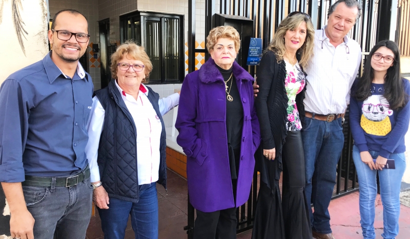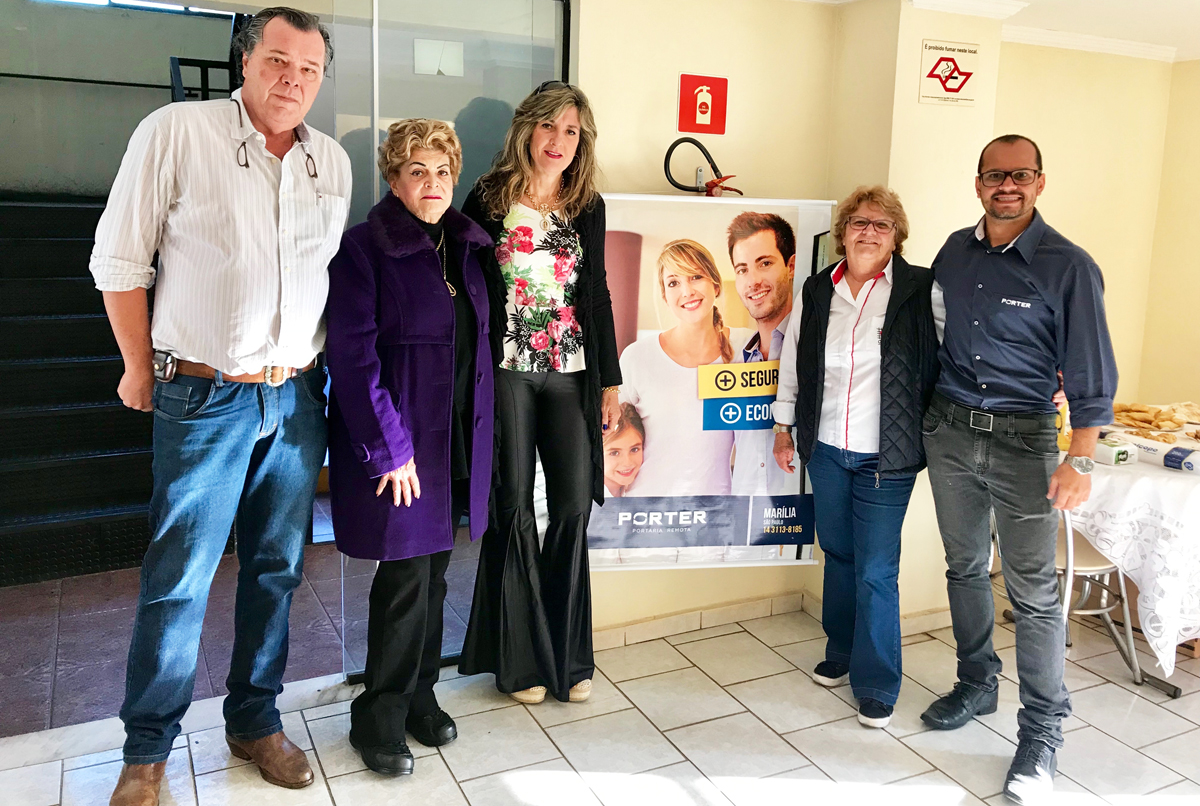Presentes à entrega da portaria, a síndica Jaqueline Maldonado Foresto, o esposo João Adelmo Foresto e a proprietária da maior parte dos apartamentos, Senhora Nilza Regina Ribeiro Maldonado, participaram de um coffee break junto com os moradores e os dirigentes da Calcular, Maria Thereza Brandão Lima, e da Porter de Marília, Moreno Medeiros.