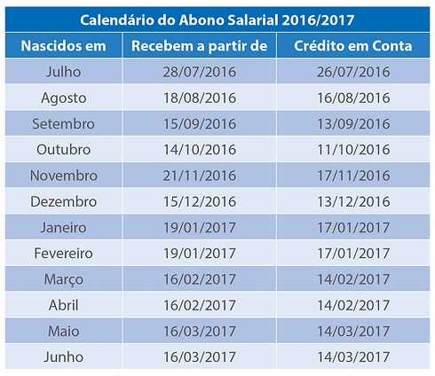 Serão destinados cerca de R$ 14,8 bilhões para pagamento do Abono Salarial no calendário 2016/2017. De acordo com o calendário, quem nasceu nos meses de julho a dezembro receberá o benefício ainda no ano de 2016.