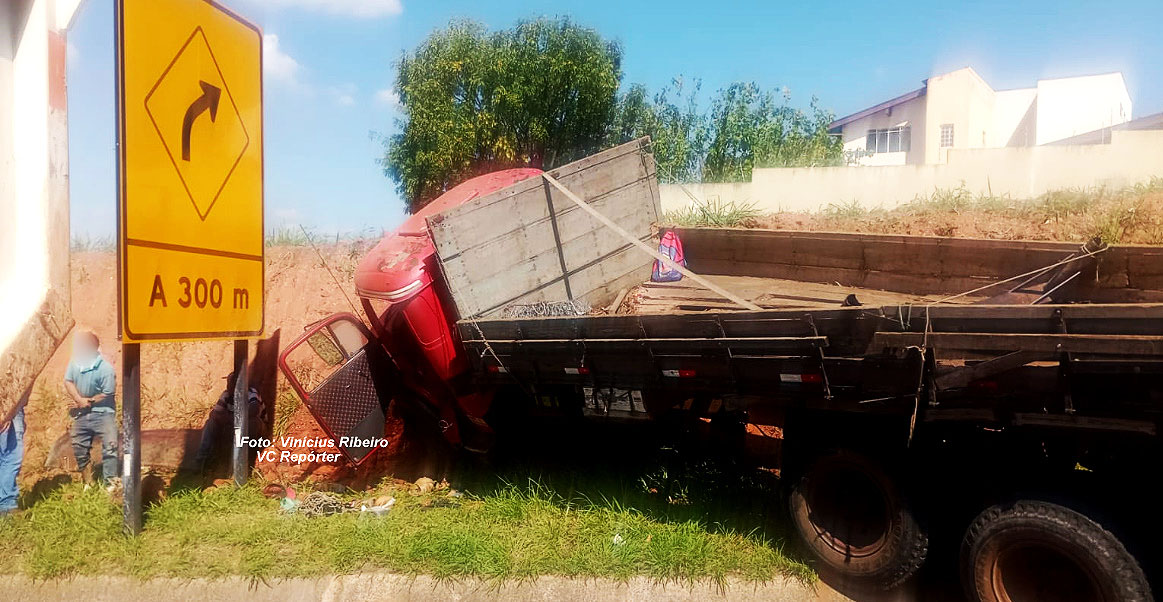Uma colisão envolvendo um carro e um caminhão, interrompeu o tráfego de veículos no começo desta tarde na rodovia do Contorno, em Marília. Sem controle, o caminhão chegou a subir no barranco.
