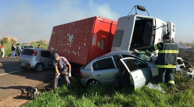 Quatro veículos se envolveram em grave acidente ocorrido nesta manhã de quarta-feira (7) na rodovia SP-255, entre Jaú e Barra Bonita (150 quilômetros de Marília).