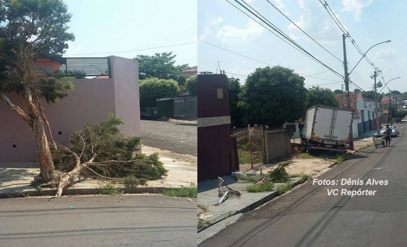 Por sorte, ninguém estava passando pela rua e nem pela calçada no momento. Internautas do portal Visão Notícias.com registraram a cena e enviaram fotos e vídeo.