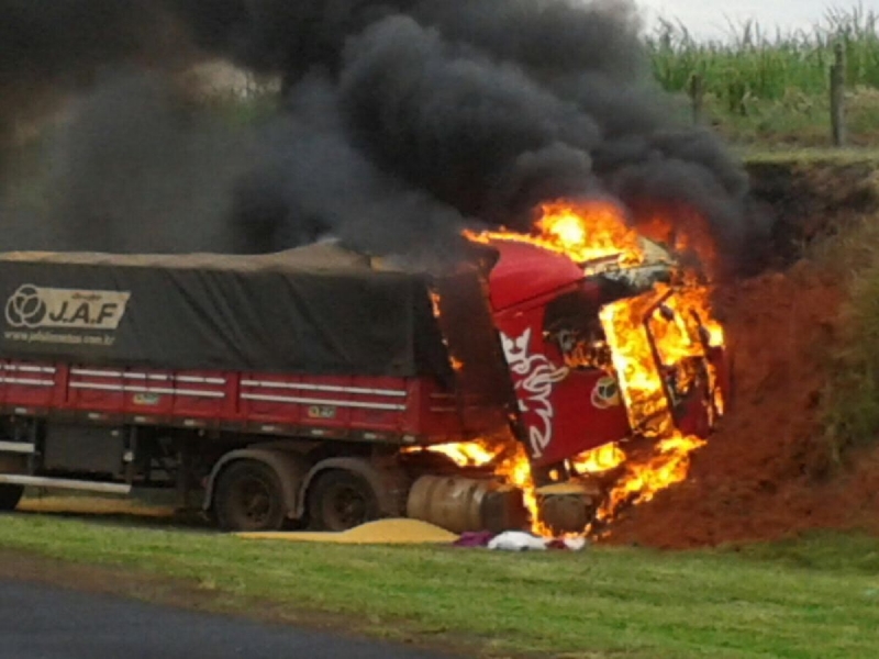 Logo depois do motorista sair do caminhão teve início o incêndio, que já foi controlado pelo Corpo de Bombeiros e não atingiu a carreta. As causas do acidente ainda serão investigadas.