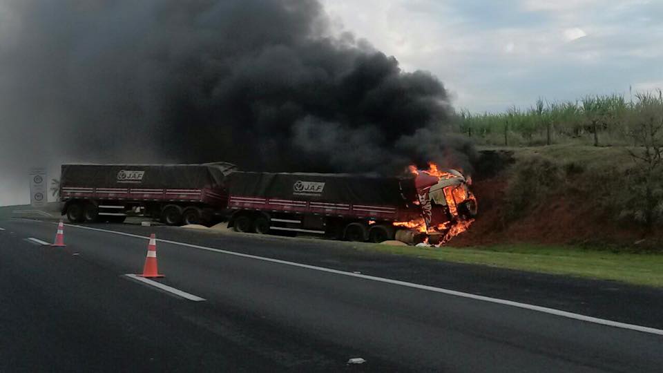 A cabine do caminhão foi rapidamente consumida pelas chamas. A pista precisou ficar totalmente interditada até que o trabalho do Corpo de Bombeiros fosse finalizado. A Polícia Rodoviária também está no local. Neste momento, a pista foi parcialmente liberada, continua interditada apenas a faixa para quem transita no sentido Interior-Capital.