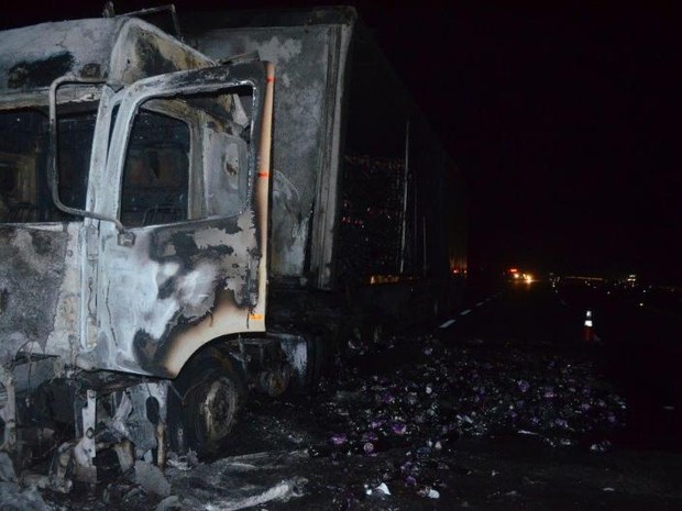 Um caminhão carregado com refrigerantes pegou fogo no início da madrugada desta quinta-feira (10), na Rodovia João Ribeiro de Barros (SP-294), em Tupã.