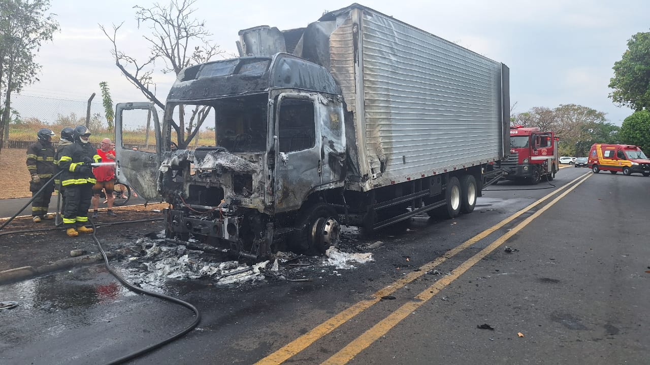 Equipes do Corpo de Bombeiros foram mobilizadas no final da tarde desta sexta-feira (03), em Marília, para combater um incêndio em um caminhão. A parte dianteira do veículo ficou destruída e parte da carga também foi atingida.