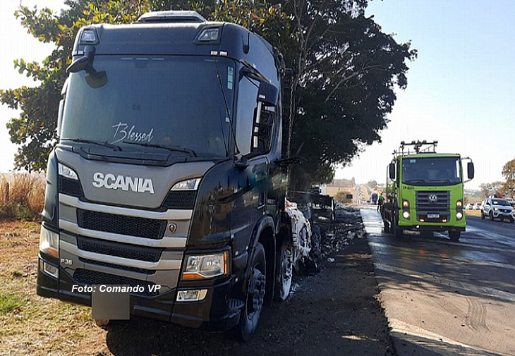 O motorista de 28 anos transitava no sentido capital-interior, quando percebeu que o caminhão Scania, estava pegando fogo na parte traseira. Ele rapidamente desceu do veículo e tentou apagar o fogo, o que seria praticamente impossível já que as labaredas estavam aumentando.