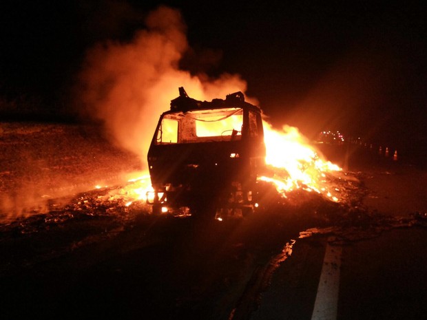 Uma equipe do Corpo de Bombeiros foi acionada e controlou o incêndio. O caminhão ficou totalmente destruído. As causas serão apuradas pela polícia.