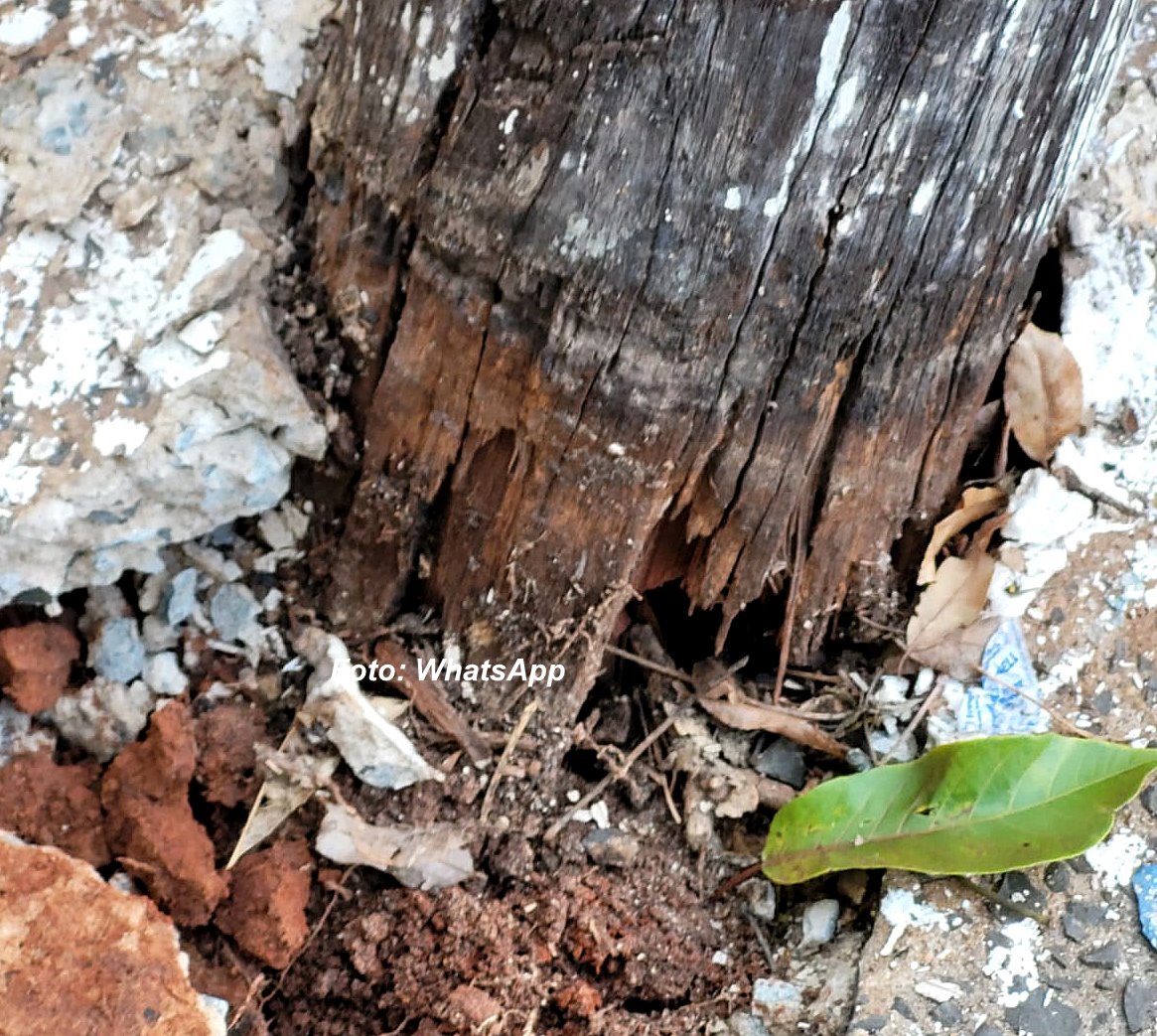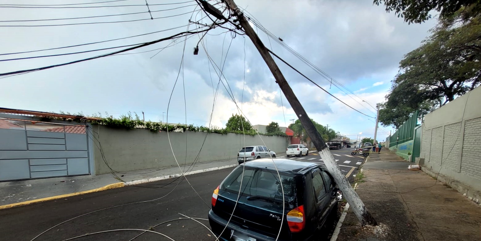Os bombeiros constataram que a queda do poste em cima do veículo também ocorreu porque era de madeira e estava com a base podre, provavelmente por ser bem antigo.