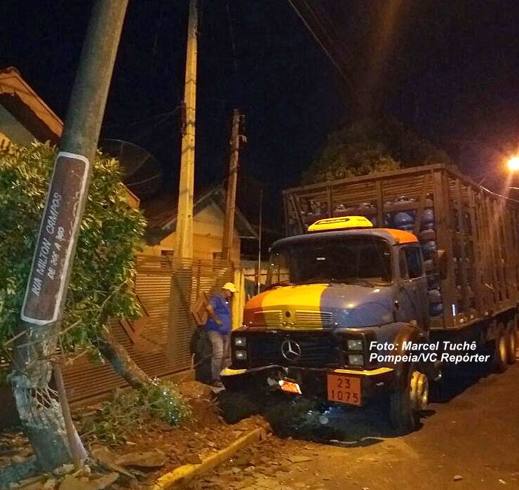 Os moradores da rua Milton Campos, em Pompeia, levaram um grande susto no final da madrugada desta segunda-feira depois que um caminhão descontrolado atingiu