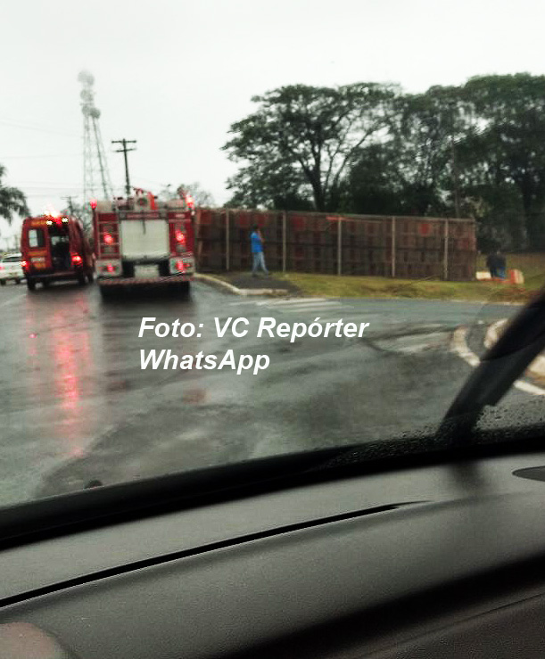 Estava carregado com caixas para transportar aves, mas estava vazio. Além da alça de acesso, uma parte da avenida da Saudade também está parcialmente interditada. Portanto, os motoristas devem evitar o local.