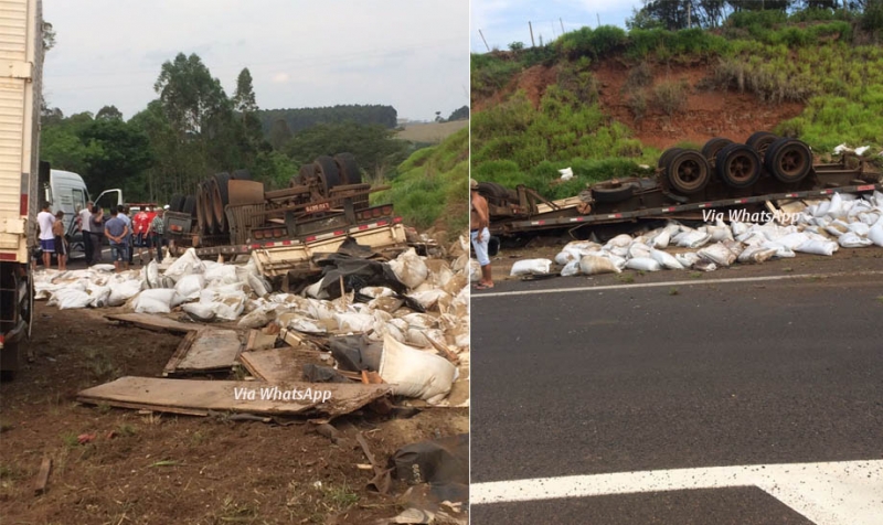 De acordo com as primeiras informações, o motorista de um caminhão perdeu o controle e acabou tombando o veículo, que estava carregado com uma grande quantidade de sacas de um produto ainda desconhecido. O condutor, que a princípio estaria sozinho, ficou preso nas ferragens. Equipes do Corpo de Bombeiros de Paraguaçu Paulista foram despachadas ao local e estão trabalhando na ocorrência. Havia o risco de incêndio, mas a situação foi controlada com a rápida ação das equipes.