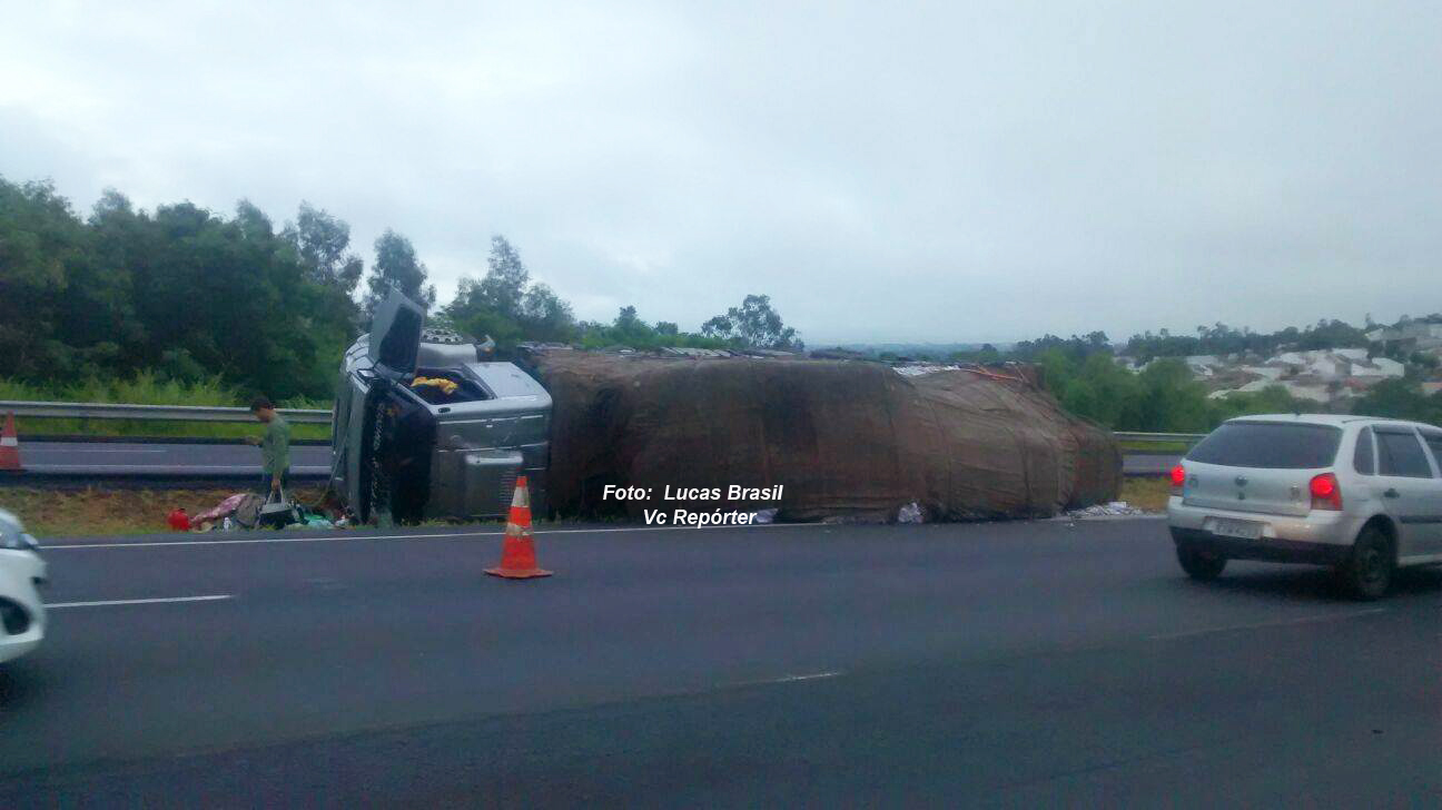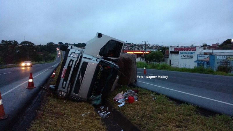 De acordo com o condutor, ele seguia no sentido interior capital e teria sido "fechado" por um outro veículo. O caminhão, placas de Indiana/SP, que estava carregado, tombou no canteiro central.