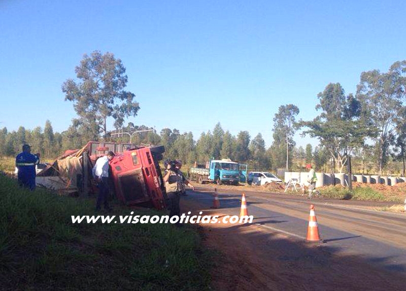 O Corpo de Bombeiros e a Polícia Rodoviária Estadual foram acionados hoje para atender a uma ocorrência de tombamento de uma carreta carregada com placas de madeira na rodovia SP-333, próximo ao entroncamento com a rodovia Transbrasiliana. O veículo ainda permanece no local e deve ser destombado nesta tarde.