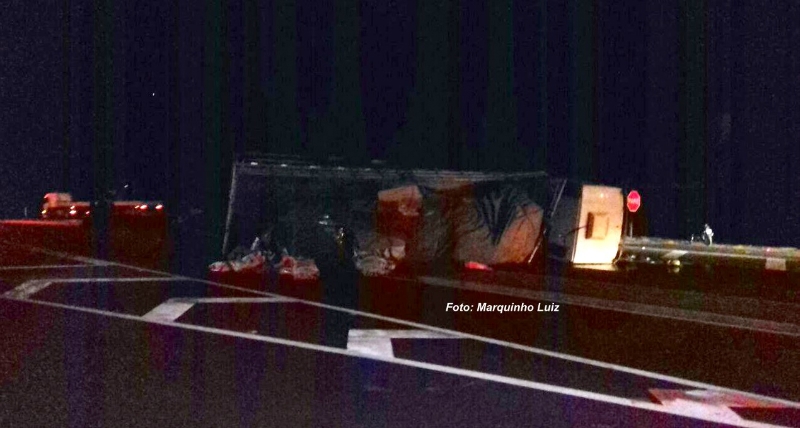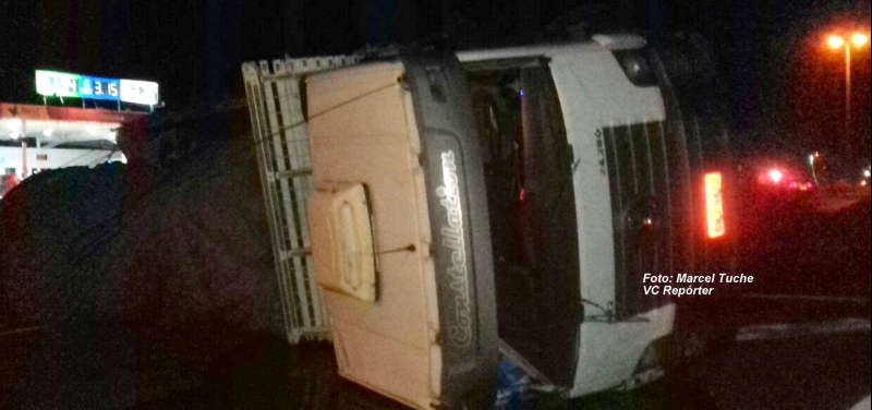 A Polícia Militar e a Brigada de Incêndio de Pompeia foram mobilizadas agora à noite para atender a ocorrência de tombamento de um caminhão no perímetro urbano da