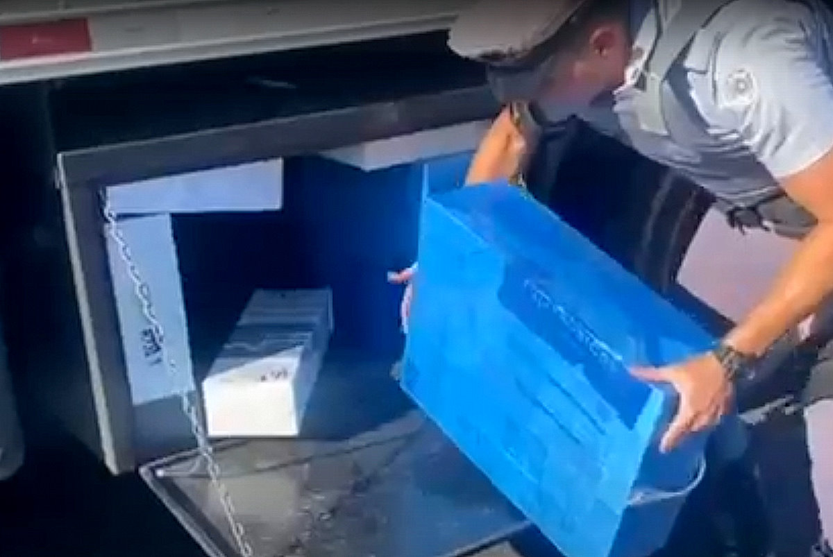 Foram localizadas, na "cozinha" do caminhão, caixas contendo diversos equipamentos eletrônicos sem documentação fiscal.