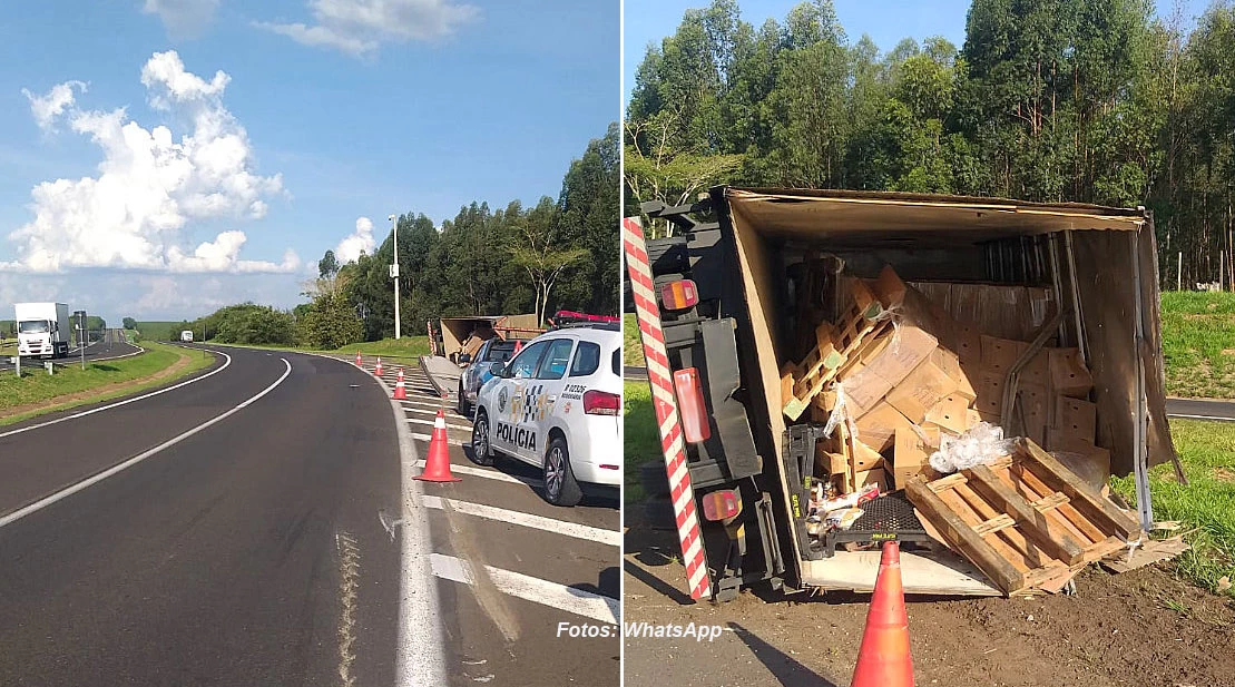 Para não bater, alegou que jogou o caminhão para a direita e acabou chocando-se contra uma defensa metálica e em seguida tombou.