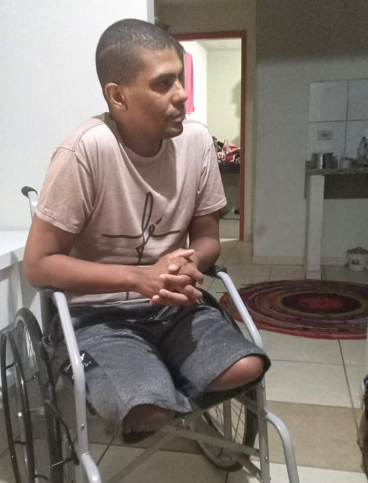 Claudionor, que perdeu as duas pernas, já está em casa. Mas, a família precisa de alimentos, remédios e ajuda para o futuro da família.