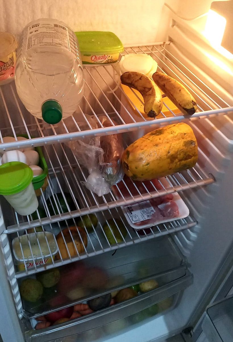 Geladeira na casa de Claudionor: com poucos alimentos.
