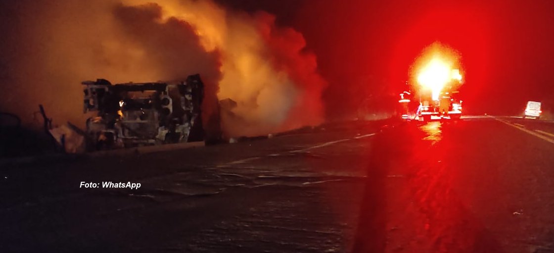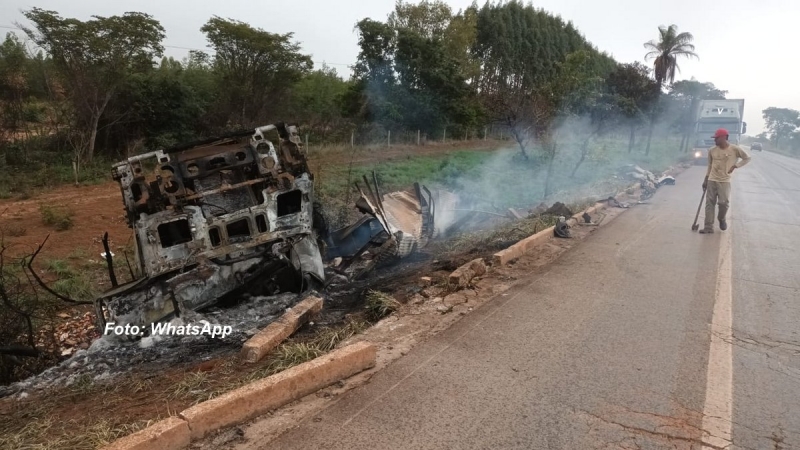 Além da carreta ficar destruída pelo fogo, a família perdeu tudo: celulares, documentos, dinheiro, roupas e até um aparelho auditivo usado pela criança.