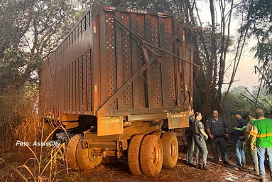Os reboques, que estavam carregados com cana de açúcar, ficaram na pista, deixando o trânsito impedido no local. Informações: AssisCity