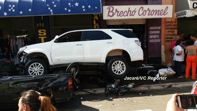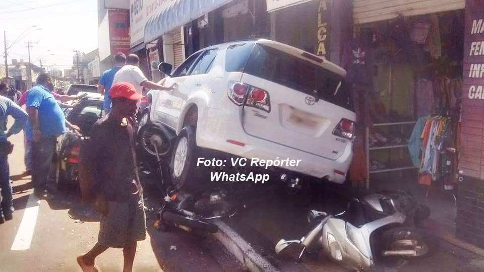 Notícias indignada com o acidente que por muito pouco não lhe causou graves ferimentos, após uma caminhoneta descontrolada atingir carros e motos no centro da cidade.