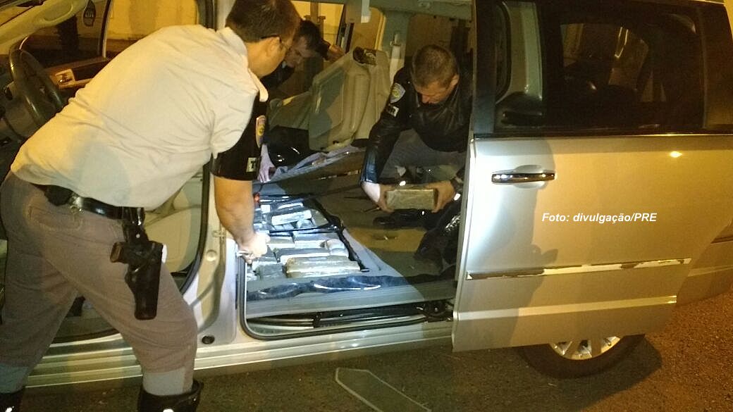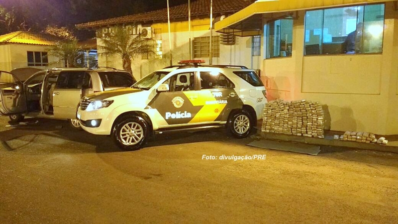 Uma caminhonete com placas do Paraguai foi apreendida pela Polícia Rodoviária Estadual (PRE) com mais de 200 quilos de maconha ontem à noite na região. Um rapaz
