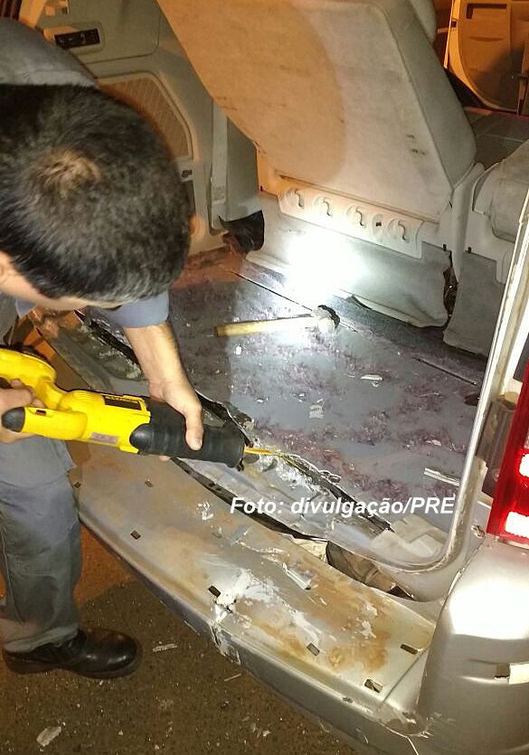 Fundo falso é aberto para retirada da droga.