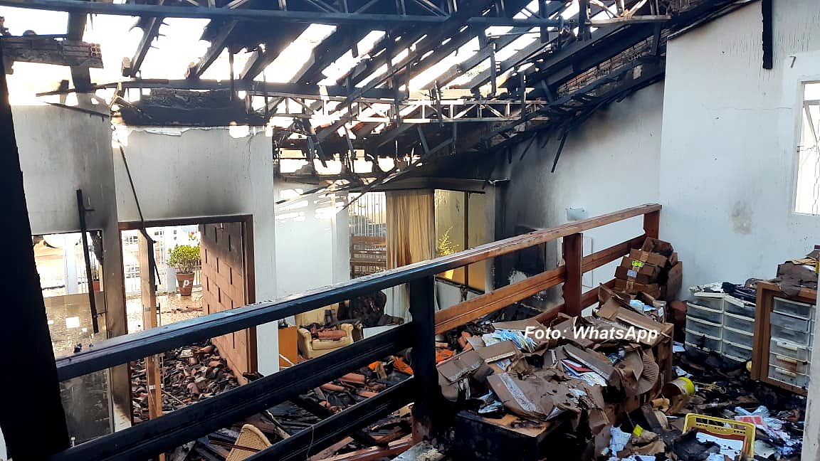 Pelo menos três cômodos da residência também foram atingidos pelo fogo