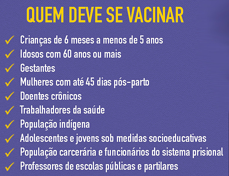 Alerta da Vigilância Epidemiológica vem junto com nova atualização de dados e apelo aos pais e responsáveis. A vacina oferecida pelo SUS protege contra os vírus Influenza B e Influenza A (subtipos H1N1 e H3N2).