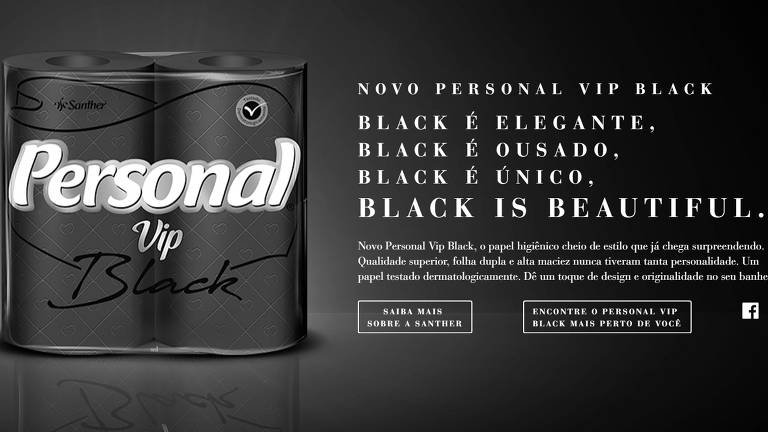 Depois de receber críticas na internet, a Santher abandonou o slogan 'BlackisBeautiful' para divulgar sua campanha de papel higiênico preto da marca Personal. Alguns internautas consideraram racista e de mau gosto usar o termo criada por ativistas negros americanos para divulgar um papel higiênico.