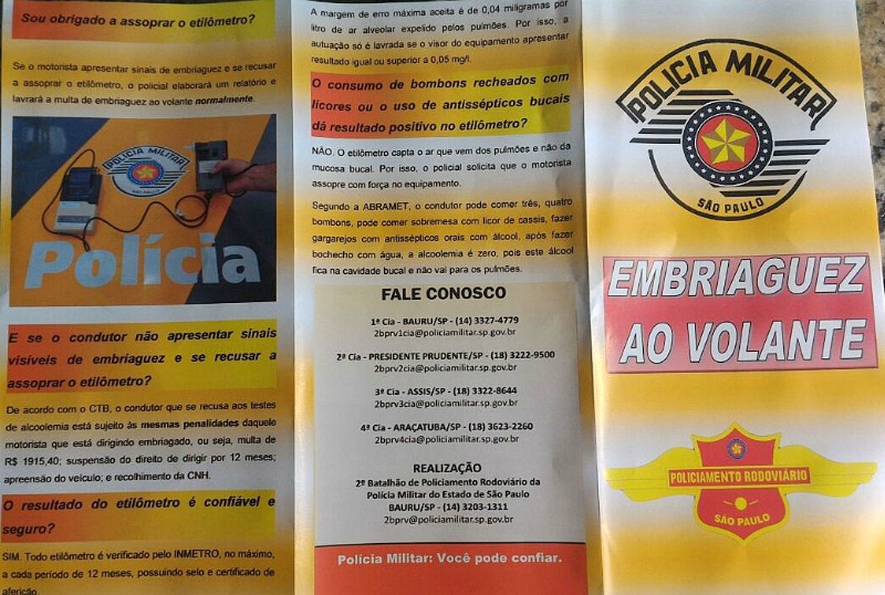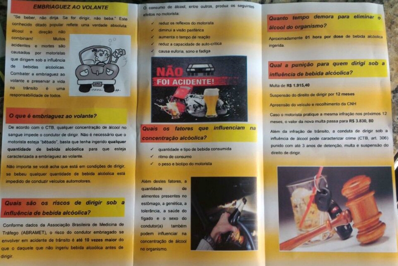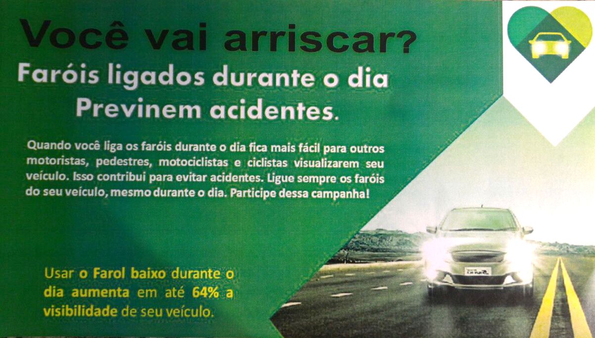 especial para orientar e alertar motoristas sobre não dirigir após consumir bebida alcoólica, não usar o celular quando da condução do veículo e, apesar da suspensão da aplicação da multa, utilizar o farol ligado durante o dia. Tudo visando a prevenção de acidentes.