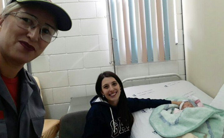 A pequena Laura com a mãe e a cb Tunes, no Hemocentro.