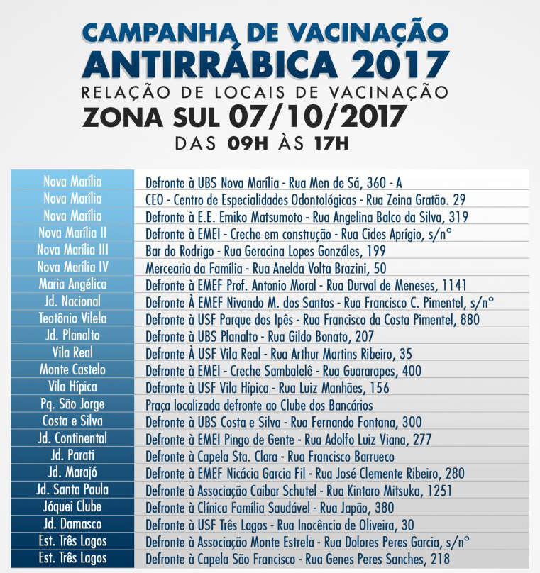 Os animais são recebidos em frente a algumas unidades de saúde, escolas, praças, igrejas e outros locais estratégicos de grande circulação. Quem não conseguiu levar o cão ou gato aos postos das zonas leste e oeste devido à chuva, pode se deslocar a uma unidade nesta etapa e será atendido.