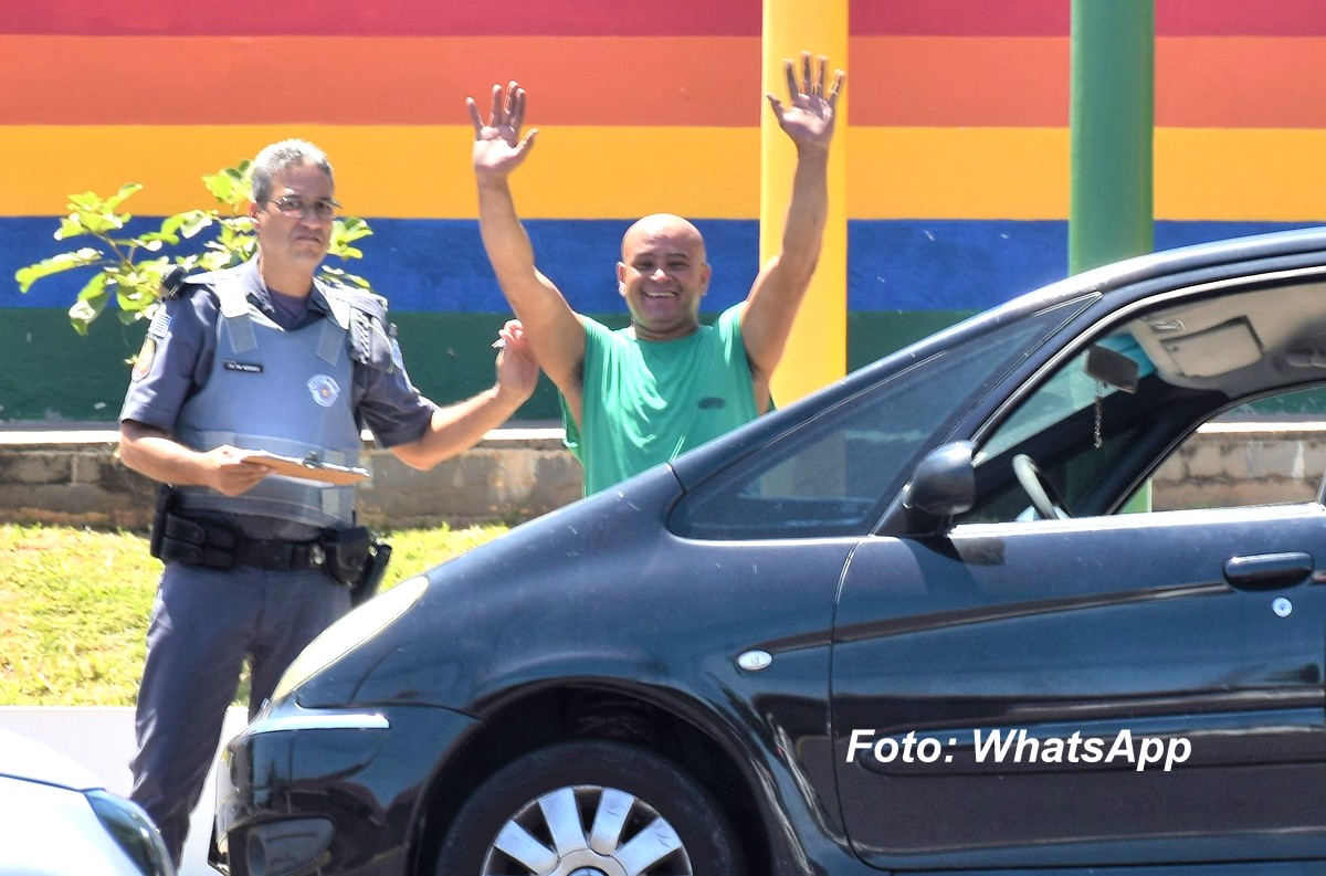 Ele foi flagrado pela Polícia Militar numa situação curiosa: mesmo estando impedido judicialmente de dirigir estava na porta de uma escola com o seu carro.